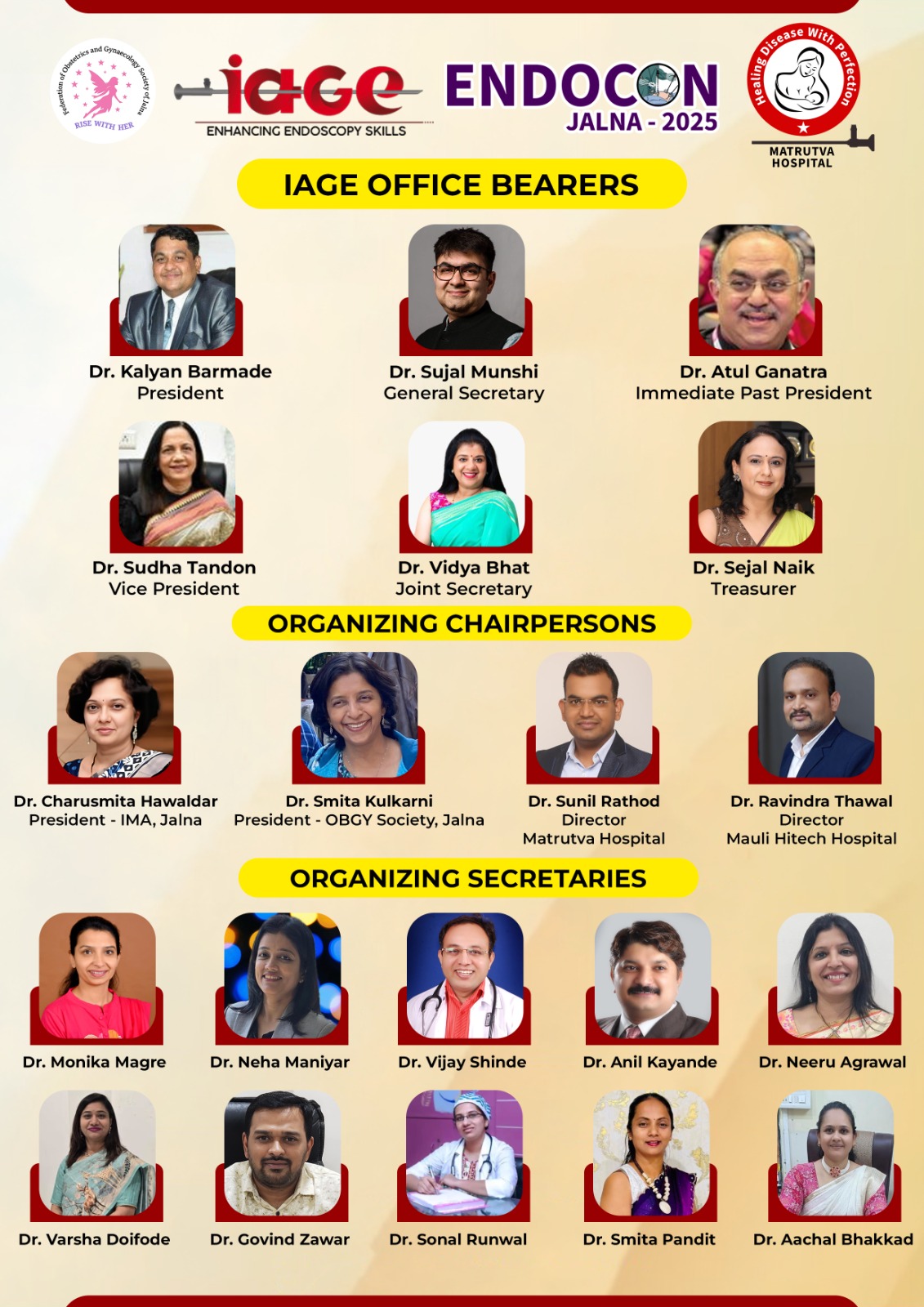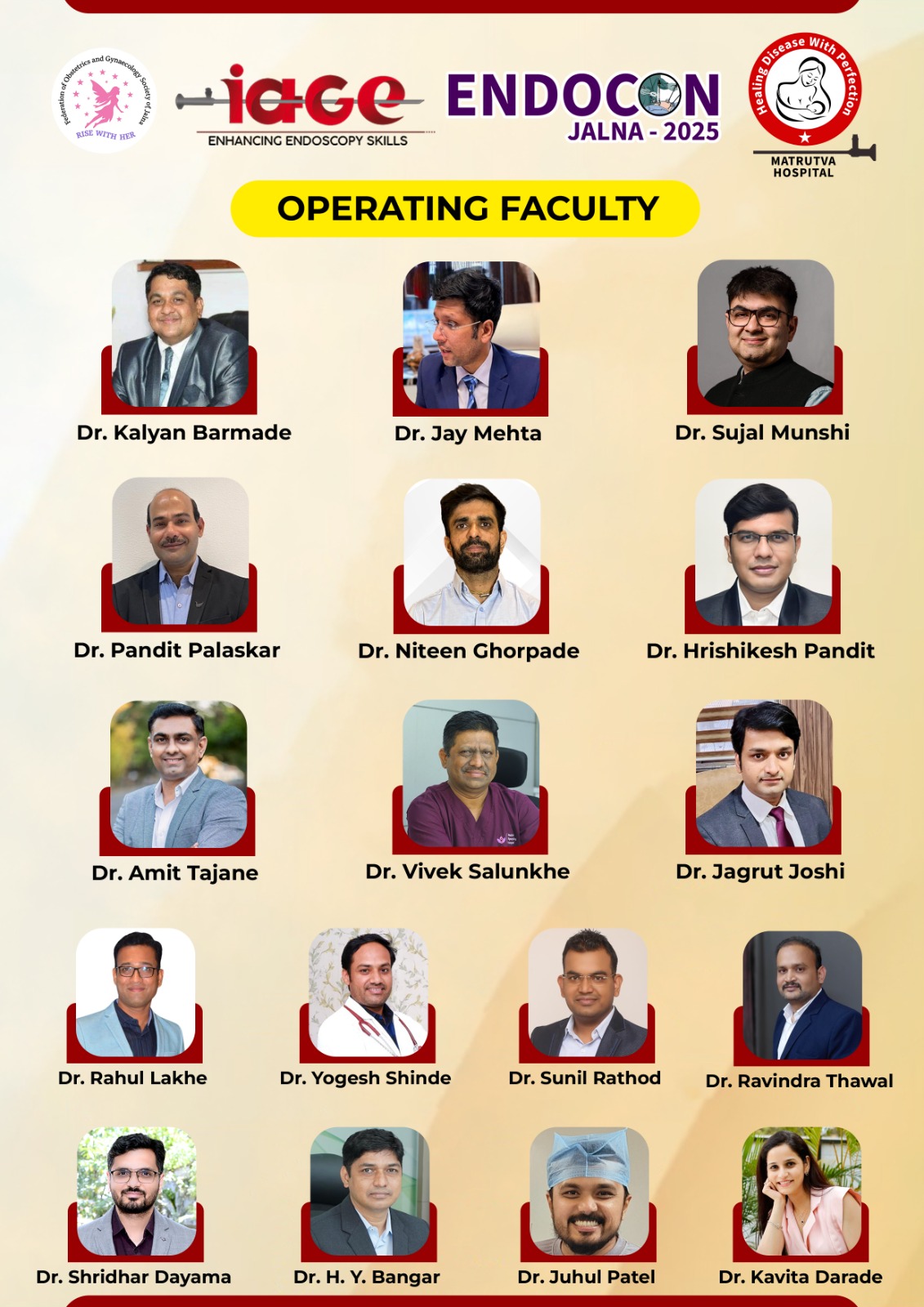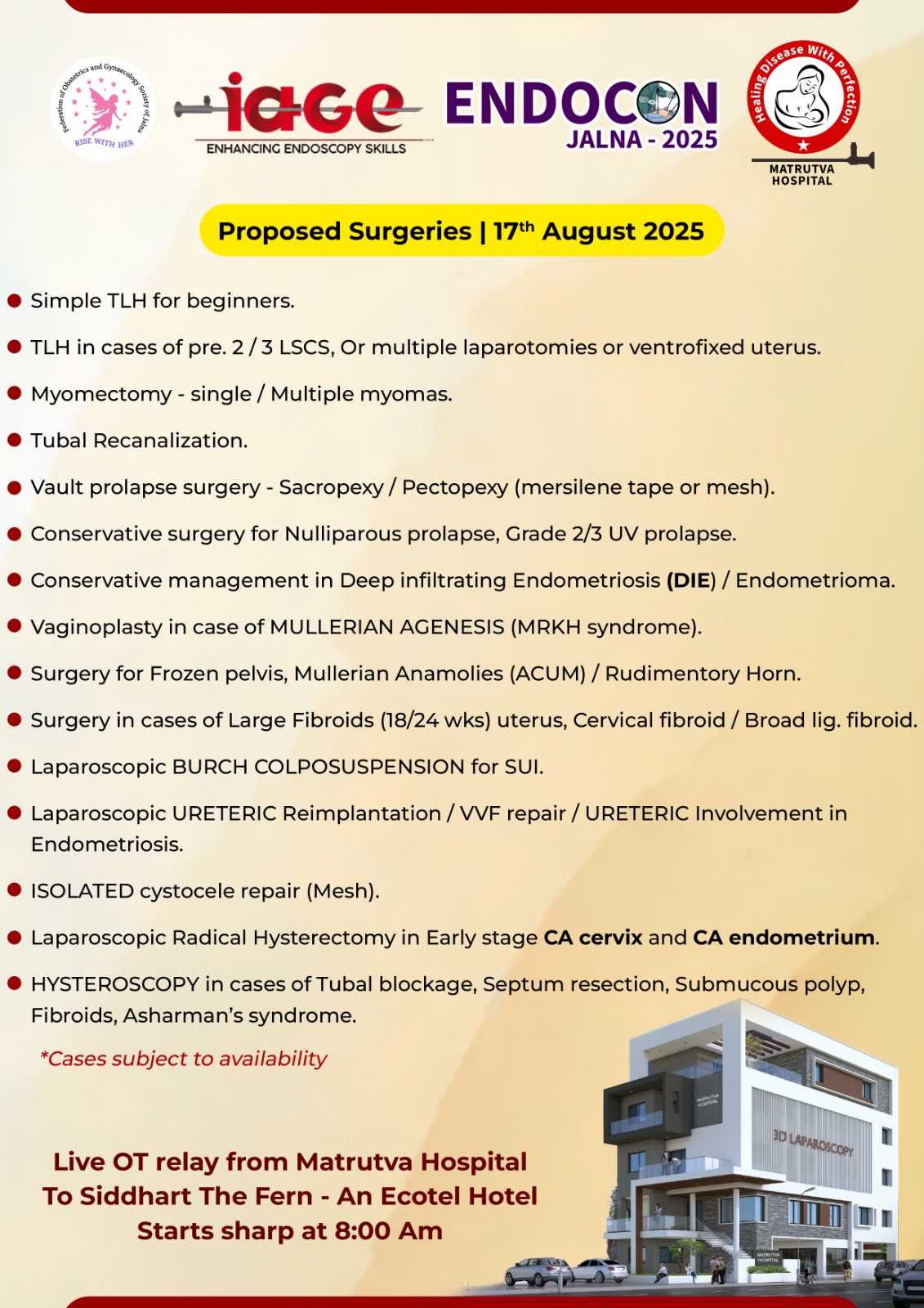 It is with great pleasure that we extend a warm welcome to you for the Live 3D endoscopy Surgery Workshop of the Indian Association of Gynaecological Endoscopists (IAGE) 2025, scheduled to take place on 17th August 2025, at Matrutva Hospital, Jalna Maharashtra.